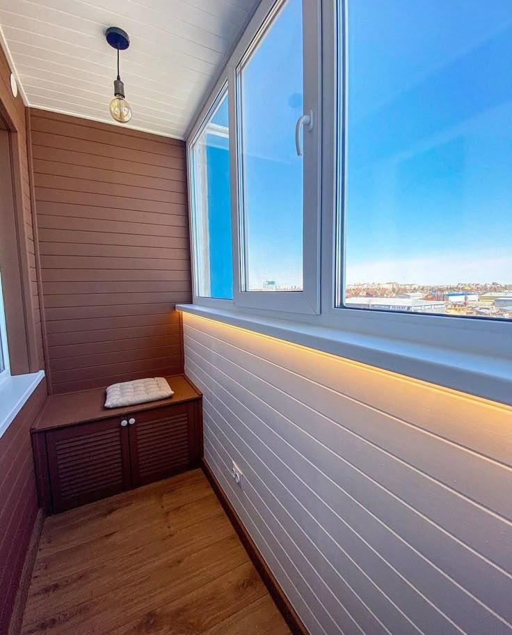Направление вагонки -горизонтальное. Вагонка крашенная Экологичный вариант для тёплых балконов. Деревянную вагонку можно покрасить или покрыть лаком, но требуется антисептическая обработка.